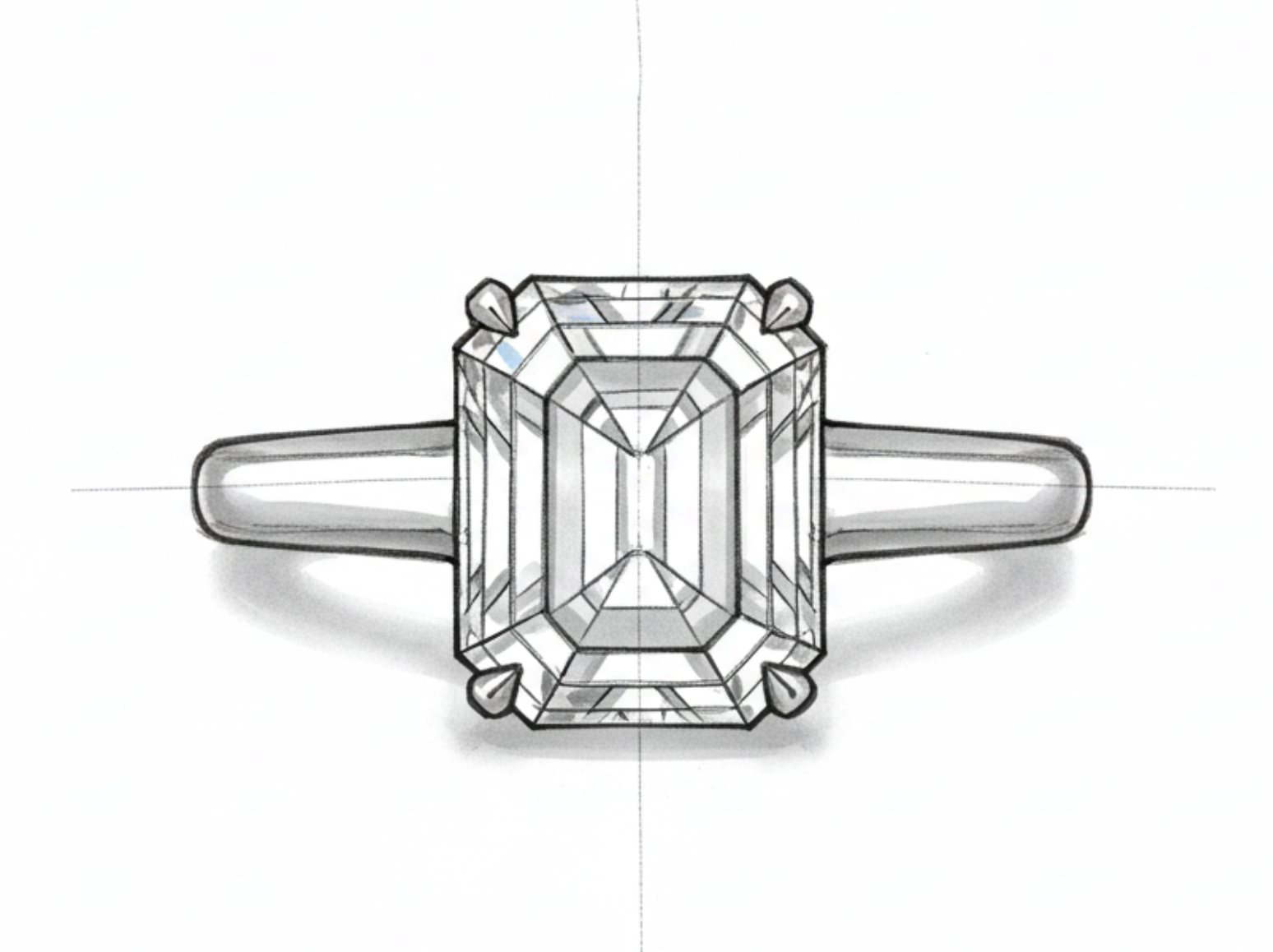 💎 Center Stone: Emerald-cut diamond (natural or lab-grown)