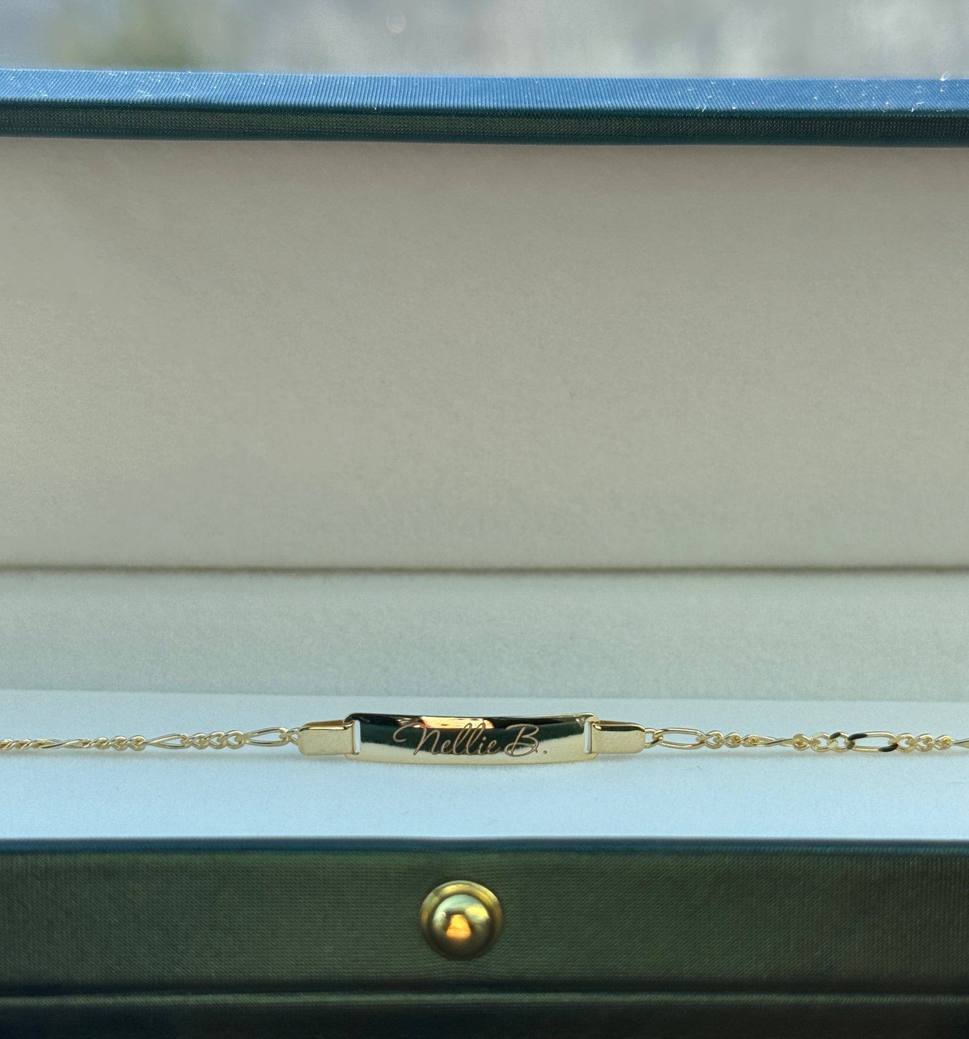 💍 Design: Figaro chain bracelet with a smooth identification bar — perfect for engraving